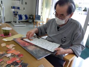 利用者さん集中されてパズルに取り組まれています。
